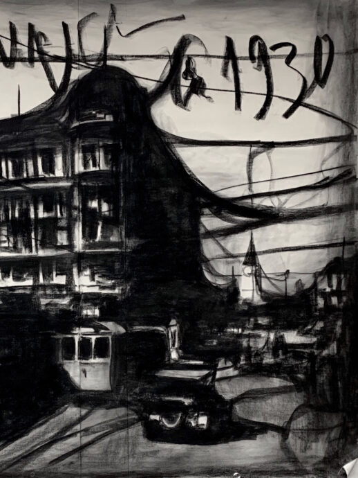 Bildnachweis: Abb.: Marcel van Eeden, o. T., 2022, komprimierte Kohle auf Leinwand, 250 x 170 cm (Ausschnitt) | Foto: © Marcel van Eeden 2022
